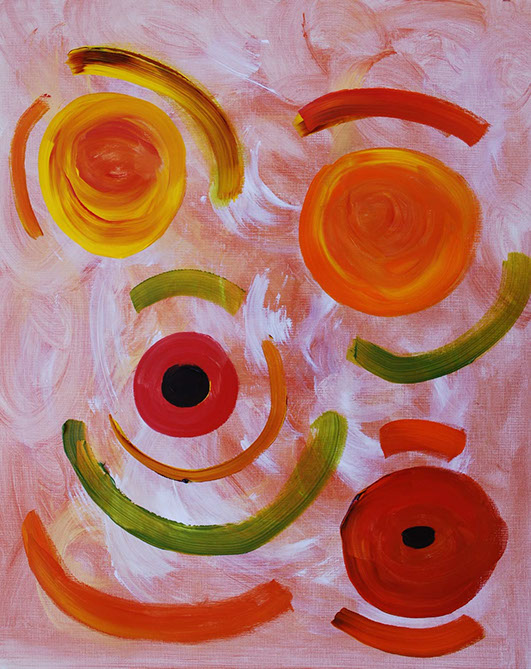 The originals are acyrilic on canvas paper. Most pieces are 16" x 20" or 18" x 24", unframed.